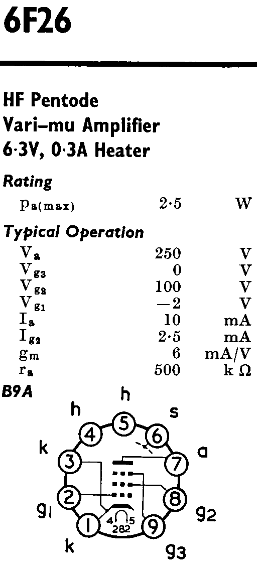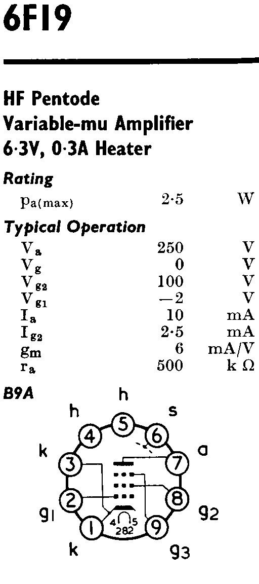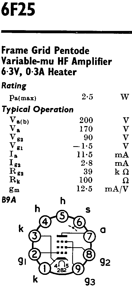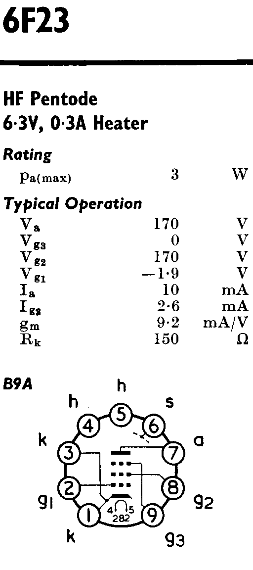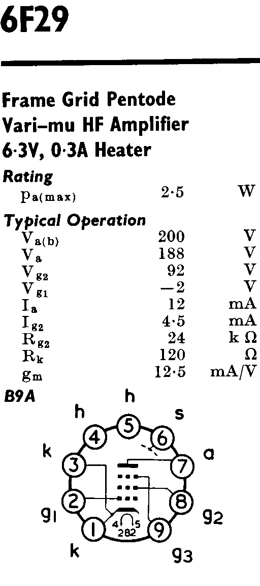 | Some tube types end with an underscore (_) followed by some letters indicating the Brand or a number if the Brand is unknown. The underscore and these letters are not part of the tube type number. This is done in case of equal tube type numbers for different tubes. e.g. 6C9_Maz is the Mazda 6C9, the 6C9_Fiv is the Fivre 6C9 and the 6C9 is the USA 6C9. See also the Brands list. |