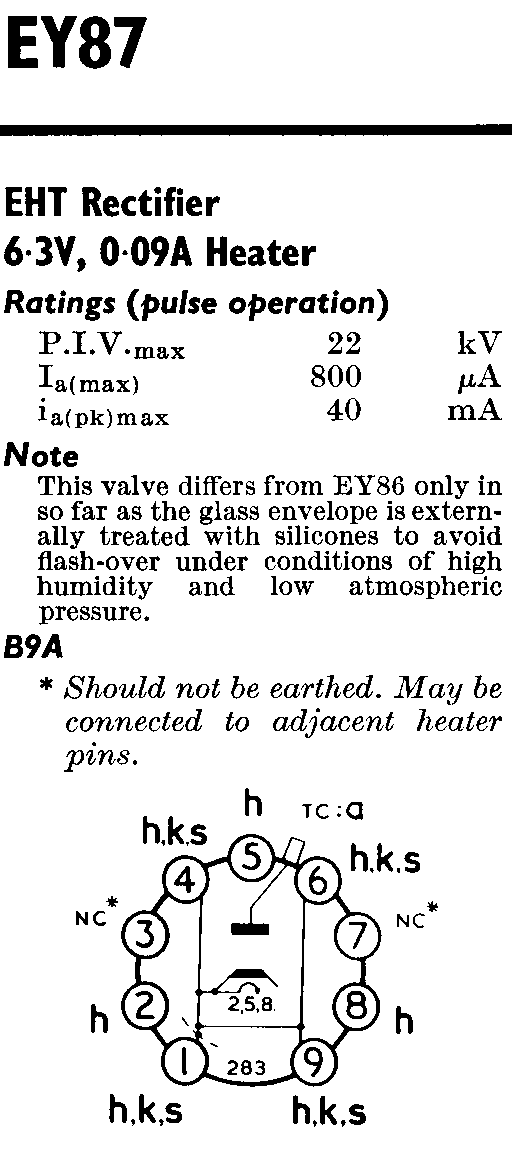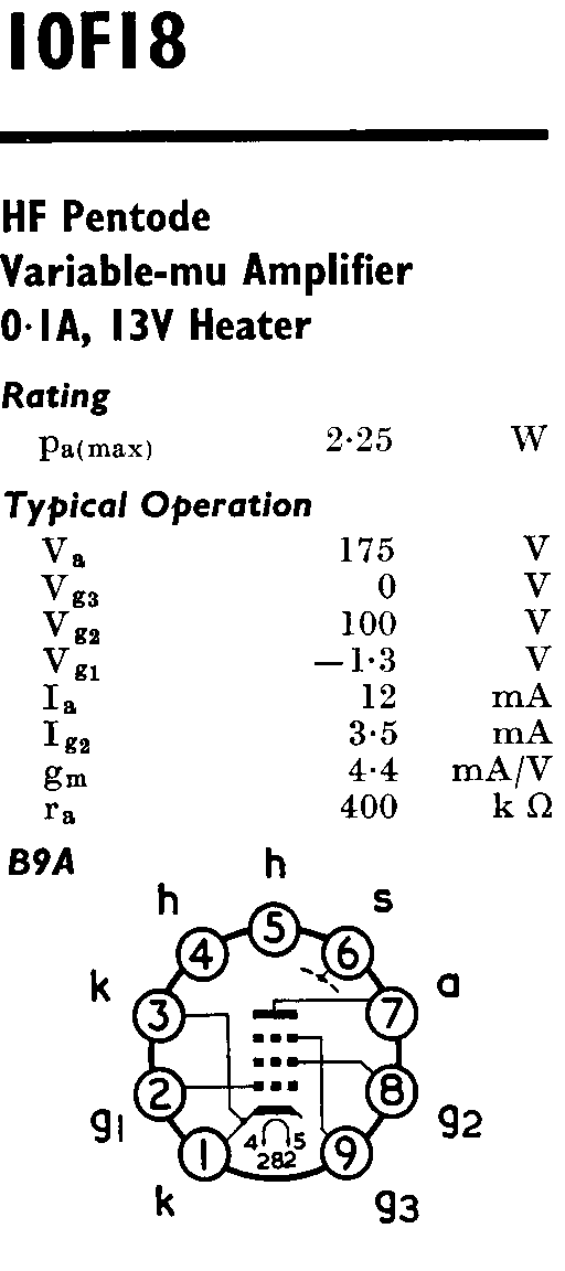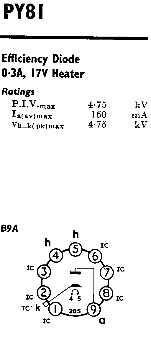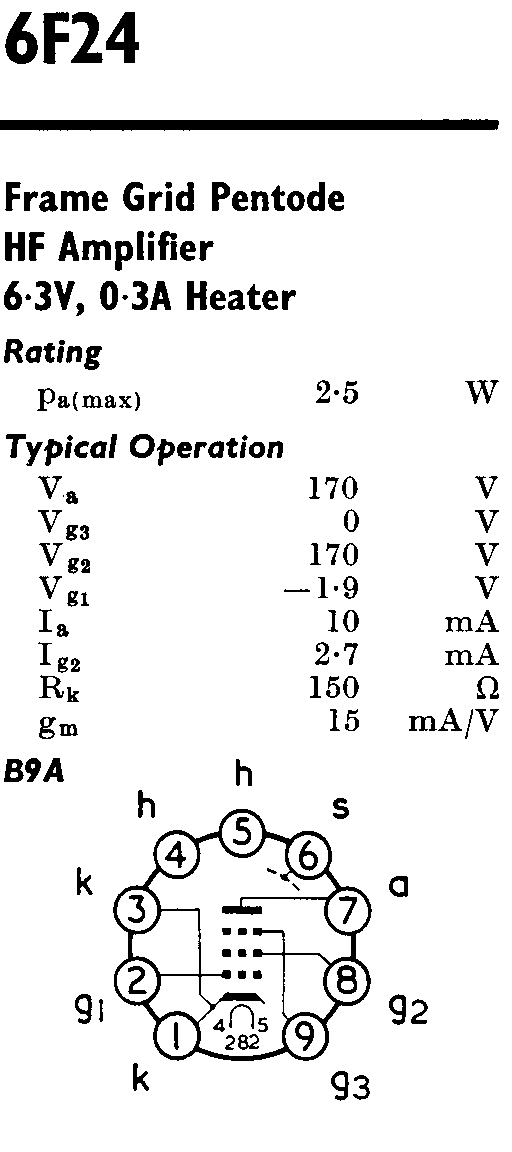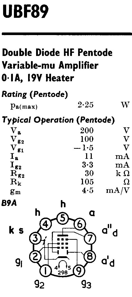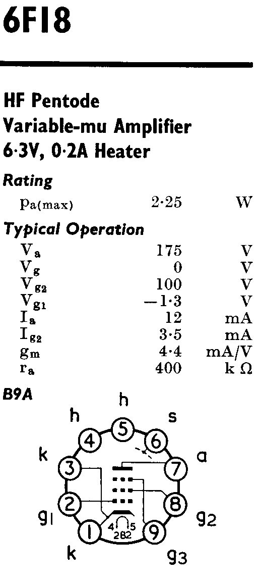 | Some tube types end with an underscore (_) followed by some letters indicating the Brand or a number if the Brand is unknown. The underscore and these letters are not part of the tube type number. This is done in case of equal tube type numbers for different tubes. e.g. 6C9_Maz is the Mazda 6C9, the 6C9_Fiv is the Fivre 6C9 and the 6C9 is the USA 6C9. See also the Brands list. |